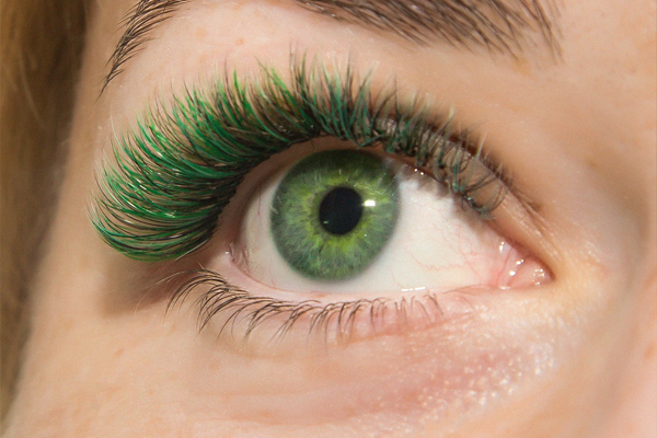 - зеленые превосходно гармонируют с серо-зелеными или зелеными глазами, рыжими волосами. Девушкам с карими или зелено-карими глазами следует предпочесть изумрудно-зеленый оттенок, который усилит яркость и выразительность глаз. Выигрышно смотрится сочетание зеленого омбре и коричневых или черных волосков, но во время воспалительного процесса на веках или при красных белках глаз от зеленых ресниц лучше отказаться.